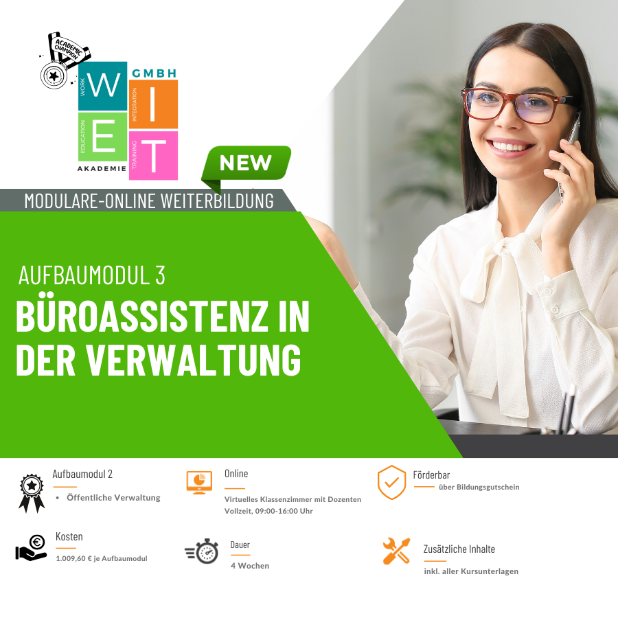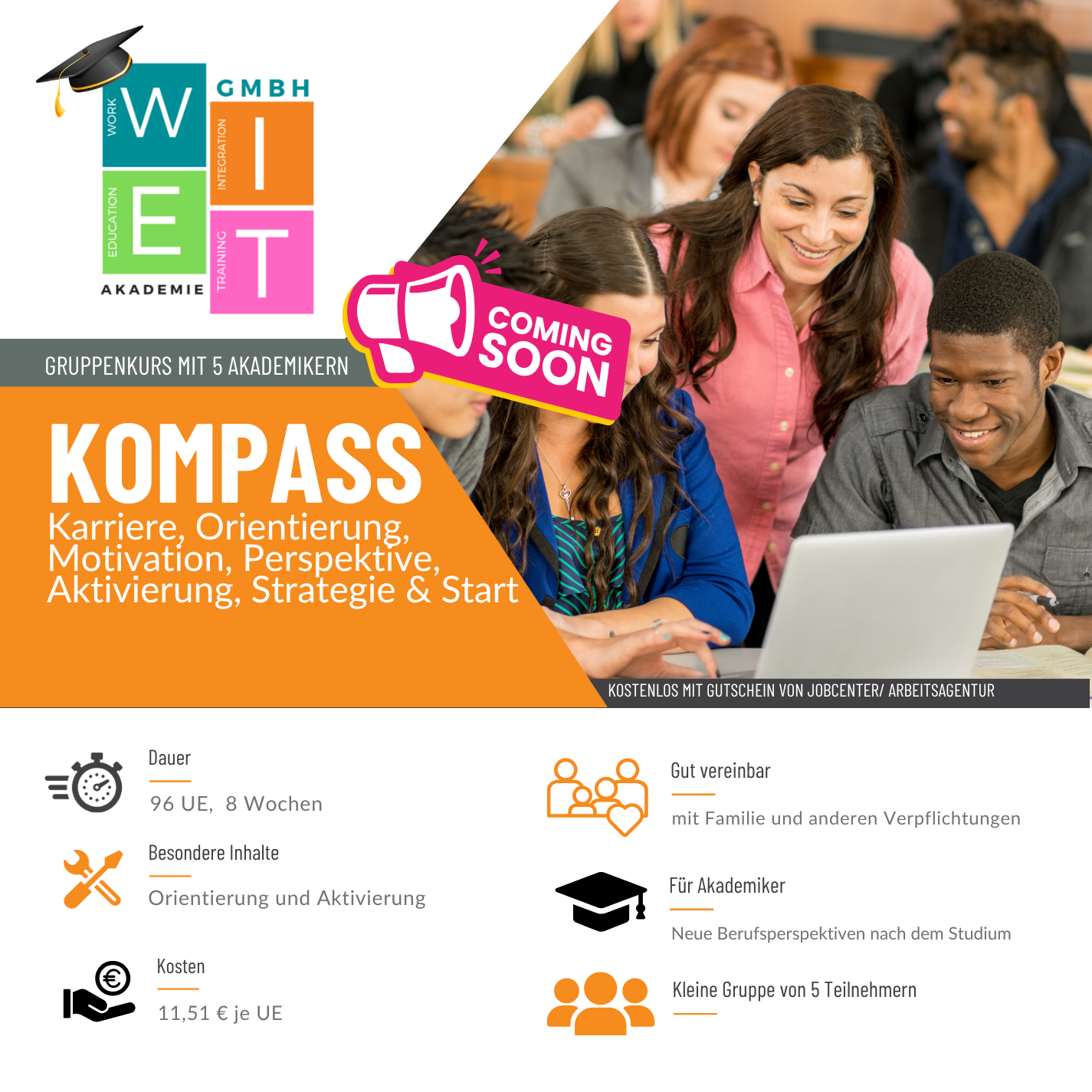 Informiere dich direkt bei einem zertifizierten Bildungsträger wie der WEIT Akademie. Wir beraten dich unverbindlich zu passenden Kursen, Coachings und Fördermöglichkeiten und stellen dir ein konkretes Angebot für das Jobcenter oder die Agentur für Arbeit aus. Das zeigt Eigeninitiative – ein großer Pluspunkt!